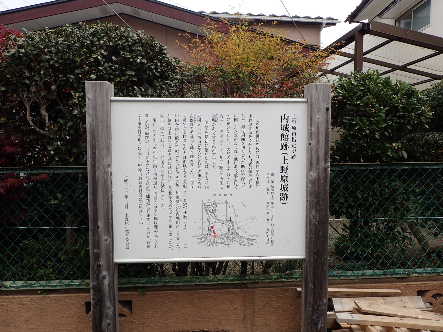 上野原駅より徒歩15分ちょっとで稲荷神社の説明板前(35.623894、139.109132)に着きました。