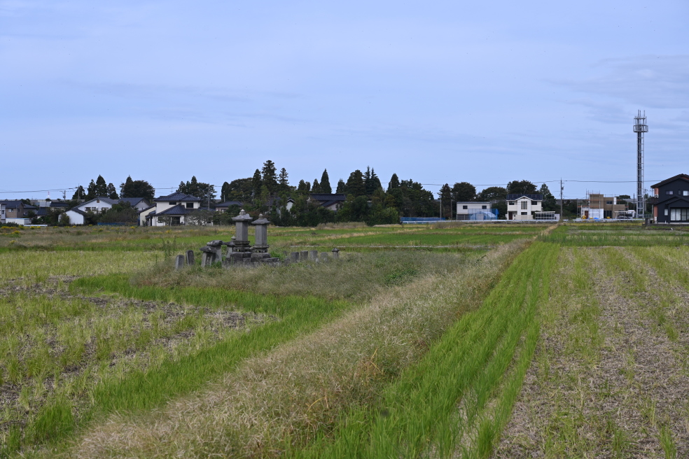 日中城からの転戦です。2020年には城びとのポイントが打ってある常福寺近辺に脚を伸ばしましたが、今回はグーグルマップの布市城を目指しました。グーグルマップのクチコミには「興国寺の北東に位置する水田内とし、現在は桃井氏被官の子孫という小柴氏の墓所がある」との記載があります。確かに田の中に、墓らしきものを視認いたしました。