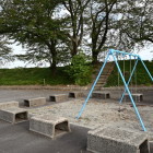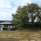 越中横尾城からの転戦です。北陸新幹線黒部宇奈月温泉駅のほど近くです。駐車場、トイレ、四阿が整えられているきれいな公園になっていました。見栄えのする土塁が出迎えてくれます。周囲の水田の形からかつての城の形状が分かるとのことです。