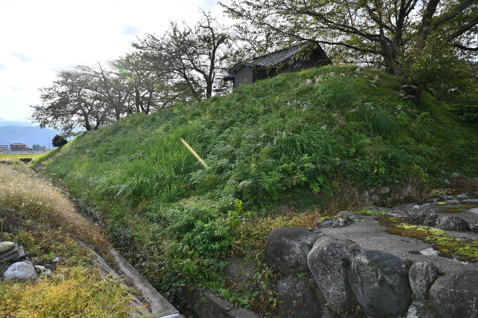 遺構は土塁がコの字状に良く残っており、階段が付いているので土塁の上を歩くことが出来ます。また、糺斎右京輔の他にも「織田太郎左衛門」が城主であったともされていて、上杉謙信か景勝のころに、この城で討死したということです。