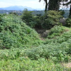現在は墓地となっています。崖となっている東側(白岩川)を除く三方に土塁と堀が巡らされていますが、草が凄くわかりにくいです。