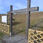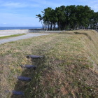 台場は海岸に向かって弓状に成って居り案内板によると5台の砲台、旧台場の保存管理上土を盛り台場を復元したとある、復元臼砲が台場上に1台、麓に1台がレプリカで設置されてる。臼砲の台場は初めて見ました。