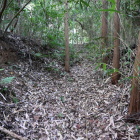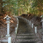 路駐付近から石段を登ると、すぐに山頂の八幡神社に到達します。境内には土塁の一部が残っています。