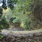 信康廟から二俣小学校をぐるっと巻くコースで二俣城へ向かいました。遊歩道はありましたがちょっとした山の中で周囲も険しめ。あれれ?なんだここは?と思ったら付城群の蜷原砦だったようです。