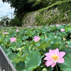かわいいピンクの大賀ハスの花が出迎えてくれました🪷