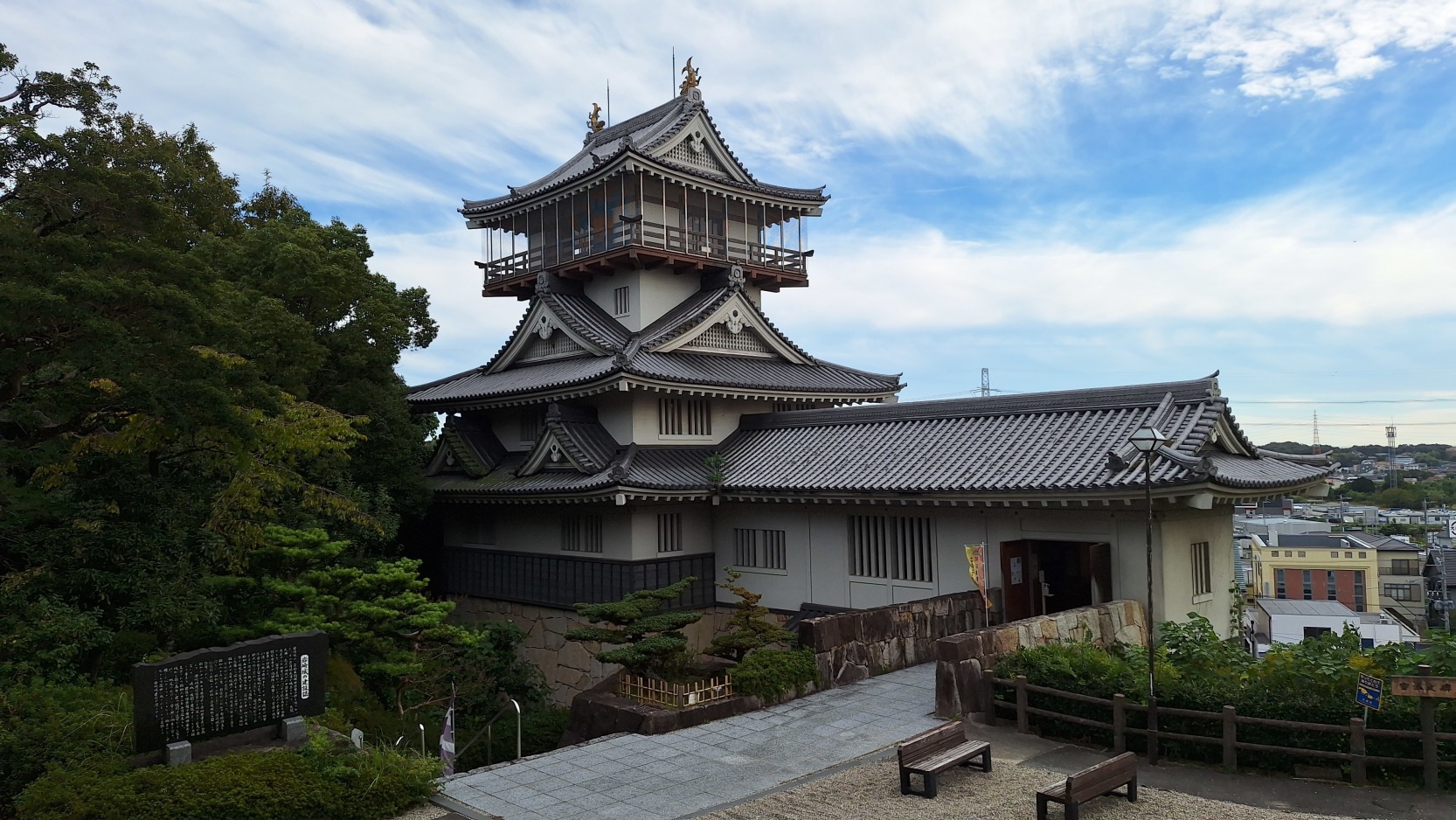 無料駐車場があります。 また岩崎城歴史記念館及び模擬天守形展望台も無料で入場できます。