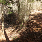 本曲輪は2段構造で、北と東に土塁が残存。堀切から本曲輪の北側に出ると横堀なのか腰曲輪なのか?