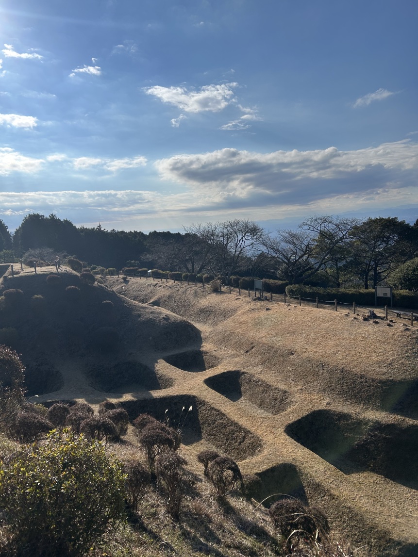 山中城は標高200mの山上に位置する県下最大級の山城です(案内板より)。実際には他にも凄い山城はあると思うけど、比高もそれほど高くなく土塁や堀切などの遺構も残っていて、気軽に楽しめる城です。