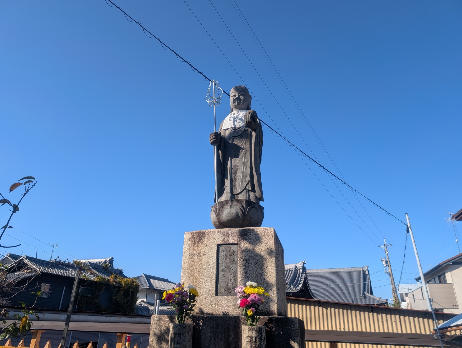 ながいこと忘れられてきた竹ヶ鼻城の戦いの犠牲者を弔おうと町の某志が供養塔をたてようとしたが、戦時下の情勢の悪化で中断されたと案内板には書かれています。戦後に町内の有志がその意志を継ぎ、塔に代わってお城地蔵を建立したとのこと。