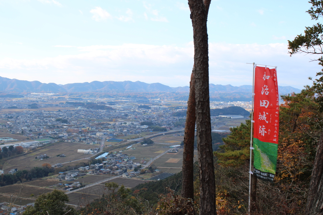 加治田城跡では、清水寺の登り口、山頂にカウントパネルを設置しました。
