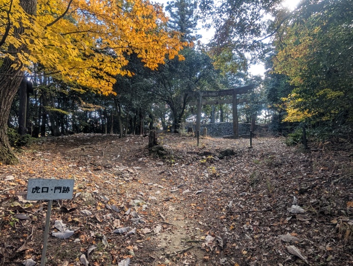 オシロフェス二日目に向かう途中で攻めやすい城を攻めていきます。道沿いに紅葉が見えて走っていて気持ちが良い。ドライブを楽しみながらの攻城です。妻木城は居館跡から登ることも出来ますが、山上の城の南側にも駐車場があります。
