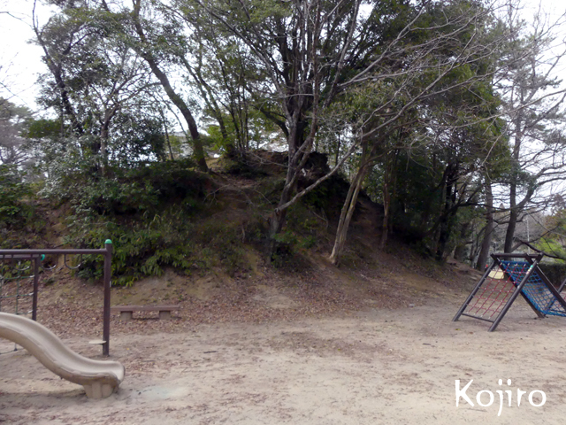 本丸が築かれ周囲に土塁が残り、櫓台らしき箇所は展望台が建っています。南東に二の丸が