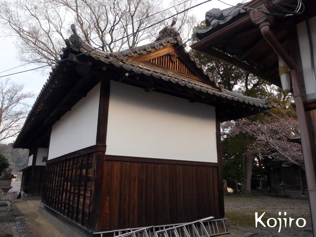 名張小学校の向に藤堂家屋敷、その隣の寿栄神社に移築された太鼓門があります。