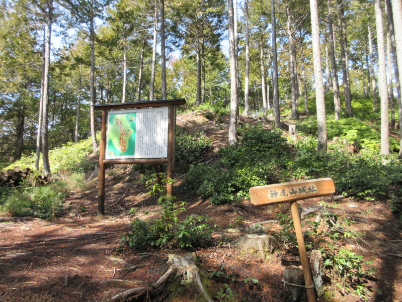 登城口である金輪寺まで車で行かれる方が多いと思いますが、下から歩いて登城しました。宮川神社の横にある神尾山城(半国山ハイキングコース)入口の獣除け扉を開けて(もちろん閉めて)登って行きます。急坂はなく道幅も確保されていて多少石がごろごろした場所もありましたが比較的歩きやすい道です。金輪寺旧寺道であったようで仁王門趾などあり、城は関係ありませんが石垣などあり、思ったより楽しめました。30分かからずに金輪寺まで行くことができました。帰りは舗装された道を歩いて下山しました。