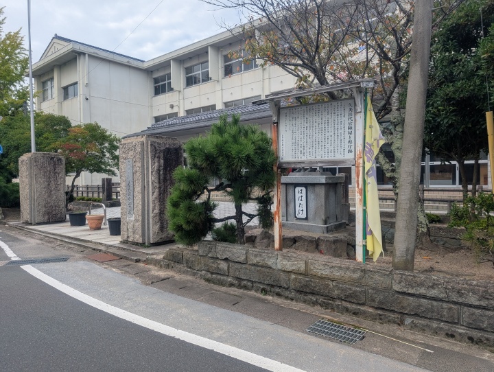 ところで、説明板に記述のある神谷太刀宮に社務所として移築された玄関棟や豊岡市立図書館本館前に移築された正門は、てっきり久美浜陣屋の遺構(移築建物)だと思っていたんですが、それぞれ県庁舎の建設時に新たに建てられたものらしく、厳密には県庁の遺構であって陣屋の遺構ではないようです。玄関棟は老朽化により立入禁止になっていましたが、正門は今も豊岡陣屋跡にその豪壮な姿を見ることができます。