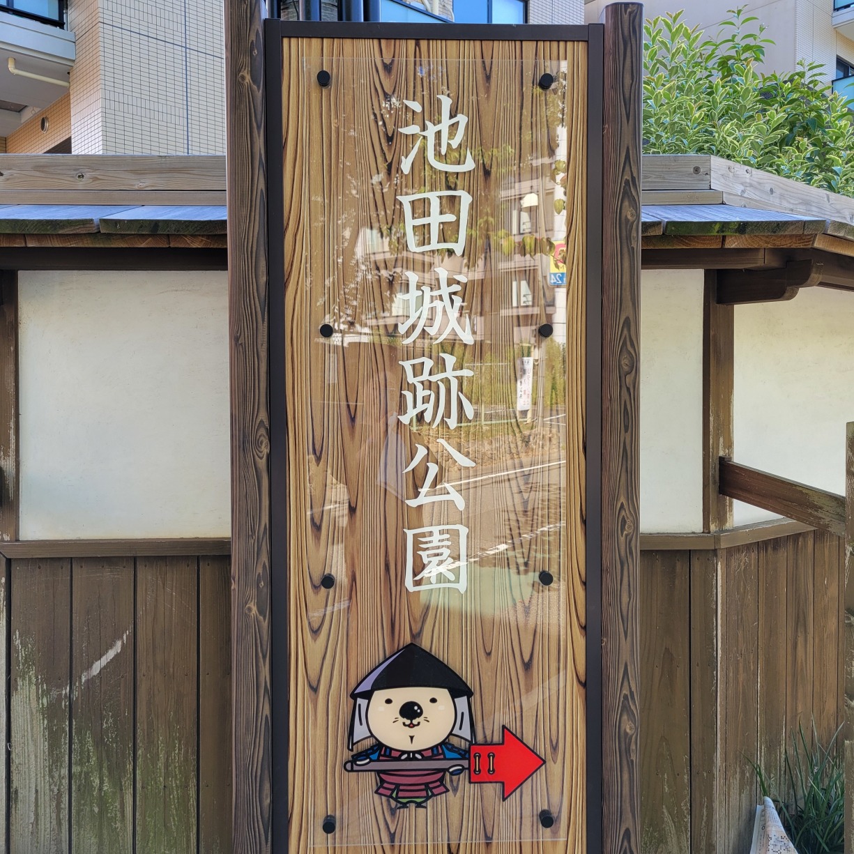現在は池田城跡公園として整備されていますが、遺構はあまり残っていません。池のそばには櫓風の展望休憩舎が建ち、周囲を良く眺めることが出来ます。