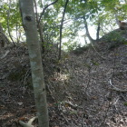 主郭と二郭の間には堀切があり竪堀となって下に続いています。城が造られたのは南北朝に期限が有りますが、戦国時代に改修が施されています。土塁などはあまり残っていませんが横堀や竪堀が念入りに付け加えられています。