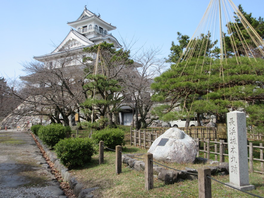 近くまで来たので寄ってきました。羽柴秀吉が築城した城ですが、大坂夏の陣の後廃城となり石垣、資材は彦根城に運ばれ昔の姿を見ることができません。現在の天守は1983年(昭和58年)に、東京工業大学名誉教授・藤岡通夫工学博士の設計指導により建てられた模擬天守です。犬山城や伏見城がモデルのようです。今では長浜市のシンボル的存在となっています。