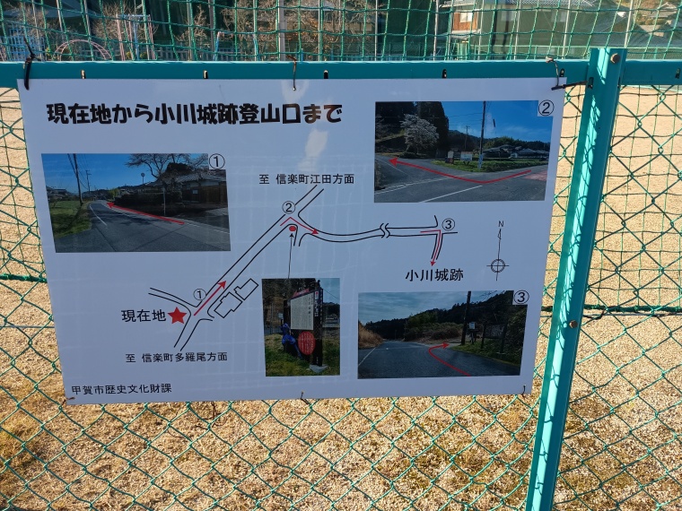 <感想>現地説明板によると小川城は1305年に鶴見氏によって築城されたとの伝承があるが定かではありません。戦国期には西之城・中之城とともに改修され多羅尾氏の支配下にあったと考えられています。多羅尾氏は豊臣秀次事件に連座して城は廃城となりました。その後本能寺の変の際、徳川家康の伊賀越えで家康は信楽で1泊したのがこの小川城と伝えられ、この時の功績で多羅尾氏は江戸時代に世襲代官となります。
