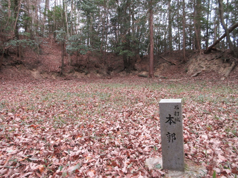 <感想>城びとの城郭情報によると石打城は室町時代後期に稲垣氏によって築城されたとされます。上記駐車ポイントからアスファルトの舗装道を南へ進むと添付写真の城跡入口があります。城跡碑右手の畑脇道を進むと東の郭に行きます。東の郭から主要部へは切岸を登らなければならないので東の郭を見たら一旦入口に戻ると良いでしょう。城跡碑左手に三郭が見えてますのでそこから入ります。