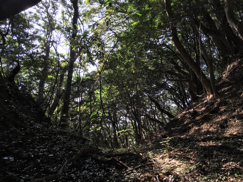 山上の城域はかなり広く、階段状に連なる曲輪、要所にいくつも施された二重・三重の堀切などが明確に残る