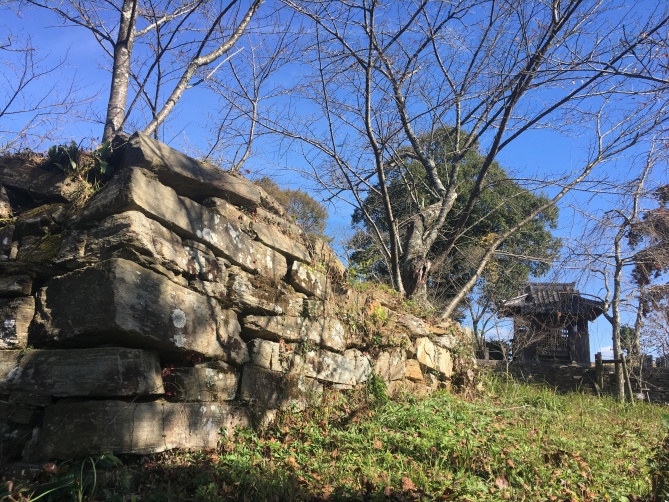 また、主郭には神社のような物がありますが、石垣で一段高くなってます。