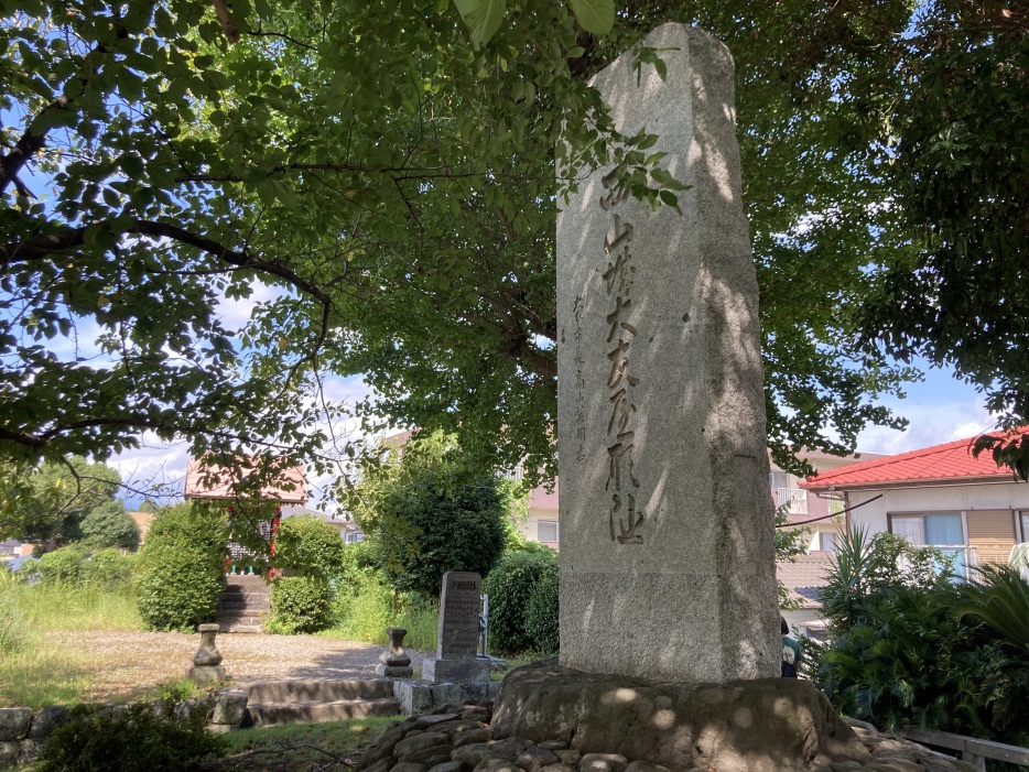 大友館から転戦。館敷地の大半は宅地化されているものの、天満社に城址碑・案内板があり、土塁の一部が残る