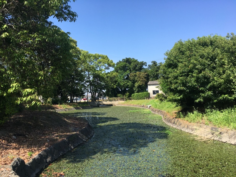 公園内を一回りし、城址碑、案内板と水堀を確認。佐賀平野特有のクリークに囲まれた城址