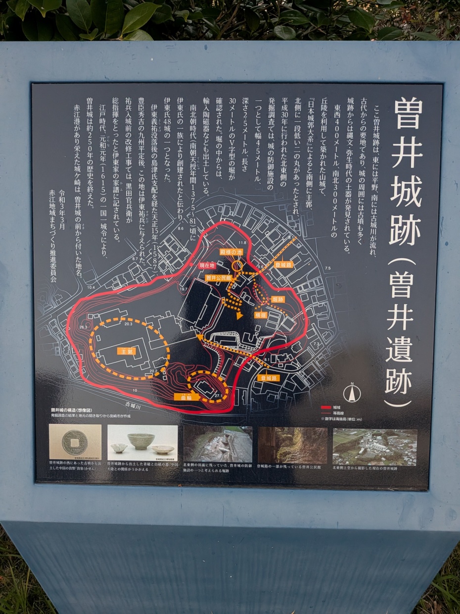 曽井城は南北朝時代(1375~81)頃に伊東氏の一族(曽井氏か)によって築かれ、戦国期は伊東氏48城の一つとなり、伊東義祐没落後の島津氏による支配を経た天正15年(1587)豊臣秀吉の九州平定の後、伊東祐兵に与えられました。その際の改修工事では黒田官兵衛が総指揮を取ったと伊東家の家請に記されているそうです。その後、江戸幕府の一国一城令によって廃城になっています。