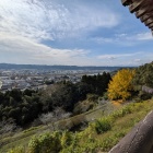 途中で急に開けた場所がありました。ここからさっきまでいた高城が見えました(写真⑤)。わかりにくいと思うので拡大した望遠写真です(写真⑥)。畝状竪堀や温泉館や秀長陣跡も見えました。左には小早川隆景の陣もあり、写真には映っていませんが右側手前には黒田官兵衛や藤堂高虎の陣もありました。総勢8万の軍勢が高城を取り囲んでいる姿は、いったいどんな光景だったのでしょうか? そして義弘には、助けに行こうとしている山田有信が守るあの高城がここから見えたのでしょうか?