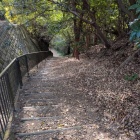 ここから坂を登ります。意外とトラックが突然来るので、注意して登ります。坂というよりここははっきり言って山ですね。標高差は麓から200m以上はありそうです(写真④)。傾斜も急で結構きついです。当時は今のような舗装された道などないので、昔の人は獣道や崖を鎧を着て槍や鉄砲をかついだまま、よくまあ登ったものだと感心します。