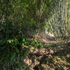 民家の間にある側溝を登るもののすぐに藪だらけで行けなくなりました。