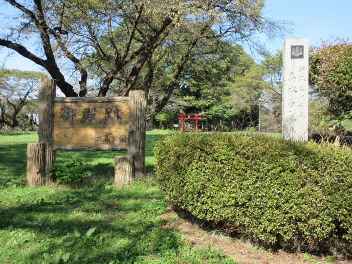 斯波氏の居城で北上川右岸標高180mの段丘に築かれており、範囲は東西550m、南北700mに及び、縄張り図を見るとそれなりに大きな城であったようです。城址は城山公園として整備されています。曲輪跡はわかりますが、どこまで当時の状況を反映しているかはわかりません。「東北の名城を歩く 北東北編」(吉川弘文館)によると江戸時代まで本丸の法面には石垣が残存していたようですが、南部利済の時に南東側の北上川に承慶橋を架ける中島を構築するために石材を取り崩したようです。本丸南西部にある石垣は後世の公園整備のときに積まれた新しいものと記載がありました。
