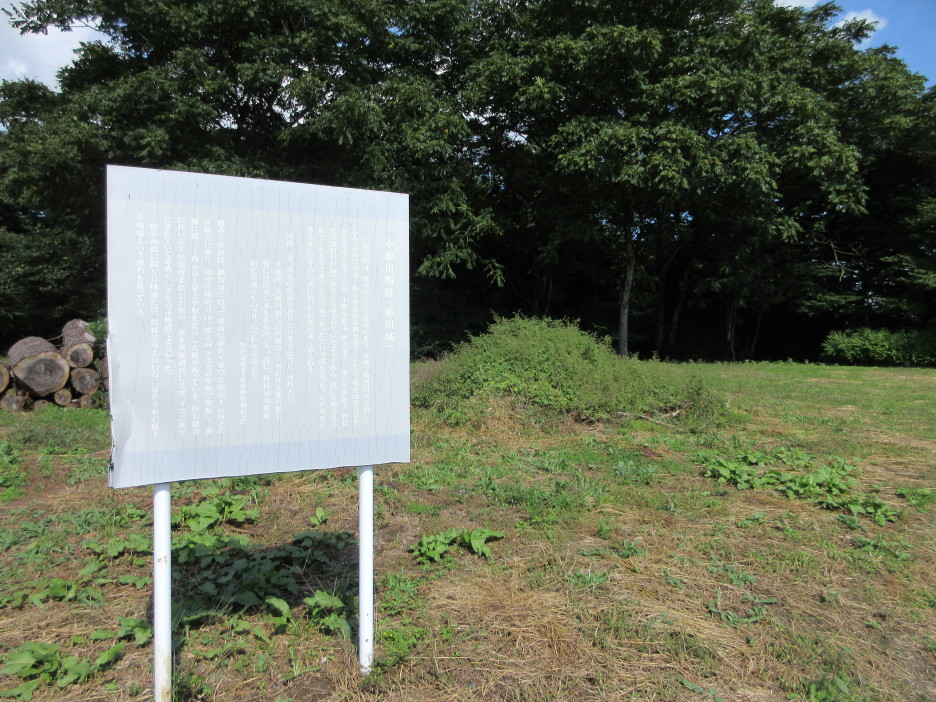 小瀬川館は鍋割川と台川の合流部に近い台地状に築かれていて、東に伸びる台地を堀切で断ち、主要な郭は北と南の二郭に分かれていたようです。現在は宅地と畑地になっていて案内板が立っていますが、遺構を確認することは出来ませんでした。