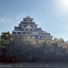 姫路城の外観が白くて白鷺城といわれるのに対し、岡山城は外観が黒く、烏城と呼ばれます。明治時代、御殿や櫓、門の大半が取り壊され、さらに二次大戦の空襲で天守等が焼失しました。設計図や戦前の写真が残っており戦後、外観を復元した内部コンクリートづくりの外観復元天守です。月見櫓、西の丸西手櫓が焼失を免れ現存しており、国の重文に指定されています。また一帯は城址公園として整備されています。
