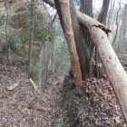 凝灰岩の採掘場で一部欠損 (2023/02/18 訪問)