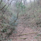 小川が流れていて土橋状の登城路があり、進んで行くと岩盤を削った堀切があります。