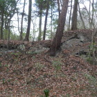 東側からアクセスしたのですが、途中で道が途絶えてしまいました。麓に堀があったので、かつての城域の内になると思うのですが主郭まで至らずです。どうやら西側に登城道が有る様子。日を改めてリベンジです。