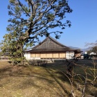 その二の丸から北に目をむけ大書院を眺める、懸魚やこけら葺き屋根を堪能できます