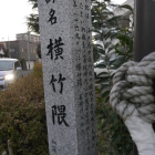 竹隈市民センターに車を駐めて、東角の有る城名石碑を確認、側面の由来書きを確認し、周辺を確認するが住宅地、竹隈市民センター東角の生垣の中に石碑が立っている、ごみの集積地の様で黄色いネットが置かれてる。