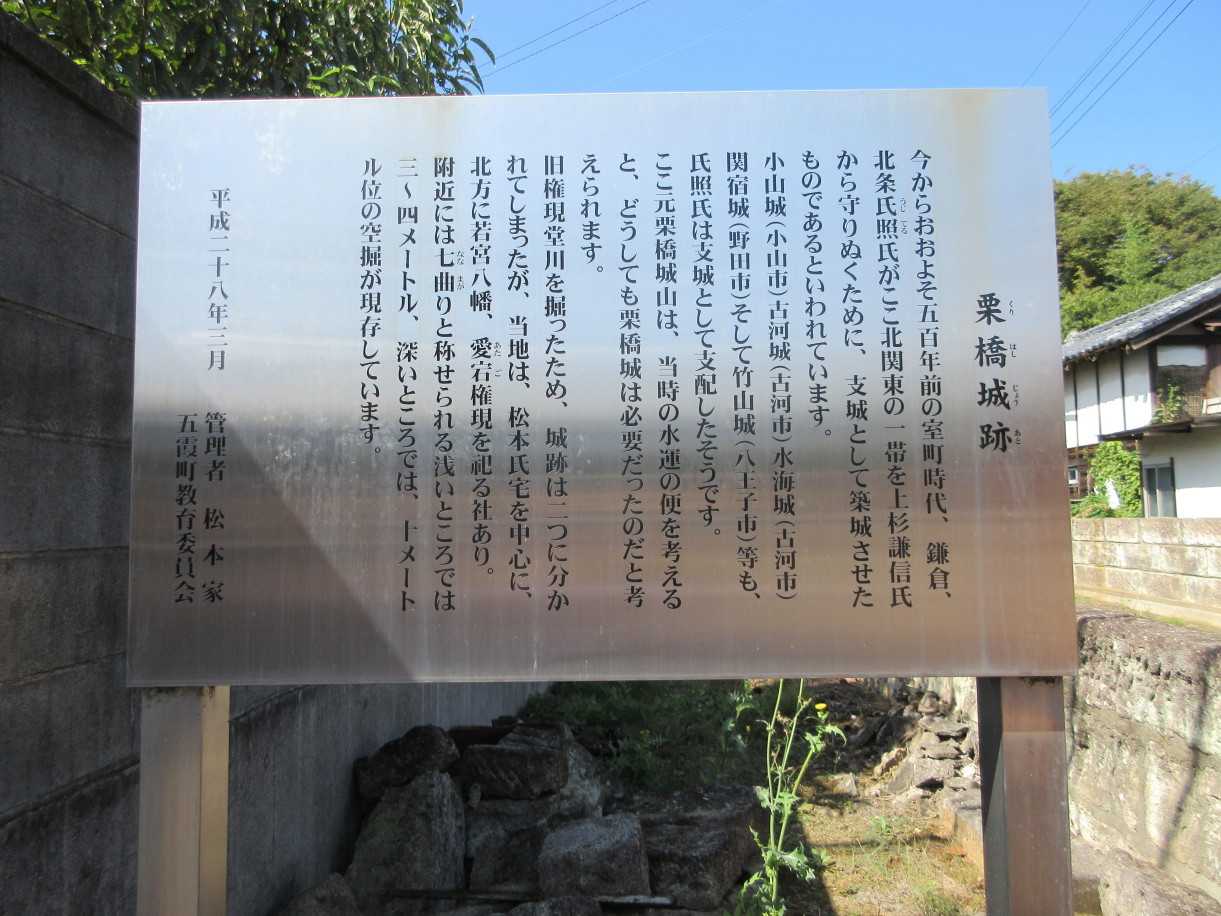 個人的には、北条氏照が関宿城攻めの拠点とした小田原北条氏の支城というイメージがある茨城県五霞町の栗橋城。