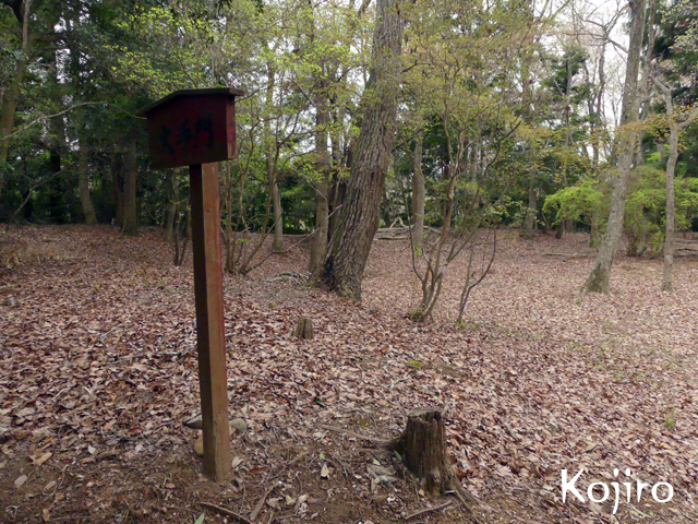 道はしっかりと整備されていて赤の看板で「一の木戸」「二の木戸」「大手門」と説明がされてあります。