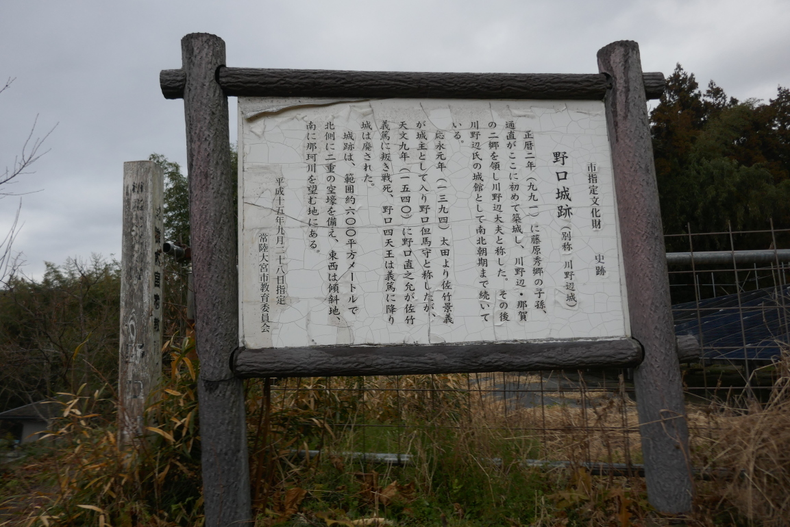 応永元年(1394)太田より佐竹景義が城主として入り野口氏を名乗りましたが、天文9年に野口幹成が佐竹義篤に叛き討死すると幹成の家臣・野口四天王(どんなメンツ?)は義篤に下り、野口城は廃城になったようです。
