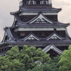 郡山から広島に本拠を移した毛利輝元が築いた城。聚楽第を模したとされる、内堀に囲まれた巨大な本丸と馬出を兼ねた小さな二の丸が特徴的。天守は望楼型の五重五階の大天守に2基の小天守を連ねた連結式で、原爆による倒壊後、昭和33年(1958)に大天守のみ再建された。