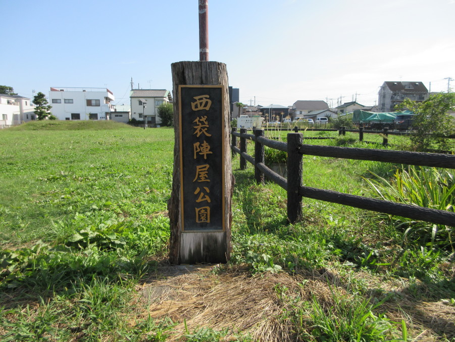 関東郡代伊奈忠次の家臣、興津良次の陣屋跡です。西袋陣屋公園となっています。公園には堀跡、土塁のような地形がありましたが、遺構か否かよくわかりません。説明板は劣化していますが、何とか読むことができました。