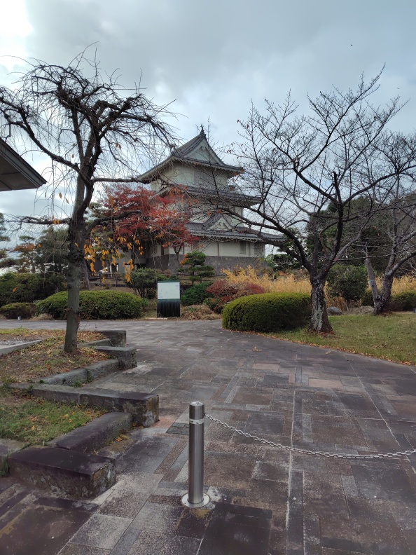 学習センターと図書館側の駐車場を利用しました。こちらに二の丸跡の碑があります。裏側から模擬天守へ。