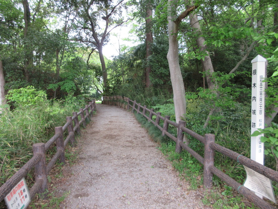 国道6号の「根木内」の交差点から東に進むと歩行者用の公園の城址口があり、そこから入城。