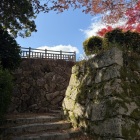 織田信忠邸から本丸に続く石段をしばらく登って行き、伝・黒金門を越えて右折した先に伝・二ノ丸の石垣が見えてきます。