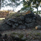 すぐに2つの曲輪に到着、東側の郭には石垣も見えます。