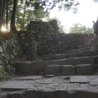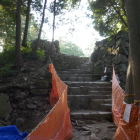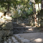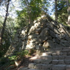この二ノ丸跡が信長廟になっています。天守台の石垣の上は木々が鬱蒼と生え茂っていて、まるで密林の中の遺跡のようです。